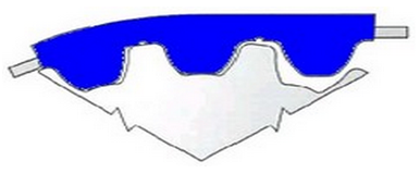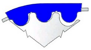 Cette forme de denture a été développée pour la transmission de puissance. Elle s’inscrit bien dans la poulie, permet des vitesses de rotation importantes et limite les sauts de dents. Ce profil de denture est peu adapté au transport de charge.